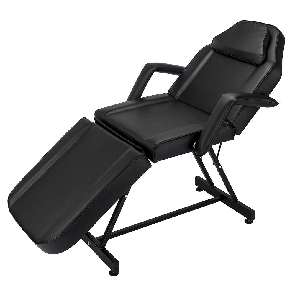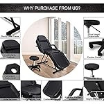 Look no further with the 73″ Adjustable Beauty Salon SPA Massage Bed Tattoo Chair with Stool! It is a 3-section bed with adjustable backrest and leg rest, which means the bed can lay flat or in a chair-like position. The head cushion can be removed to reveal a facial hole.