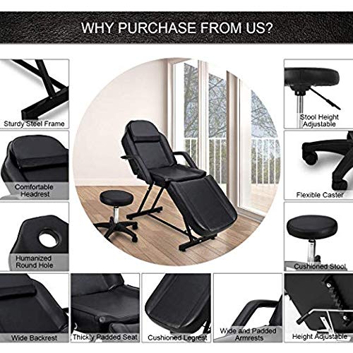 Heavy Duty Steel Frame Improves Stability: This table is made of high quality welded steel frame, recline tilts backrest and footrest. It also comes with removable head cushion, a towel hanger and a free hydraulic stool. Has a comfortable padding and PU leather that is to last for years. Our steel frame is heavy duty and can withstand long-term use and remains stable, suitable for frequent use by different people, especially for commercial and home use.