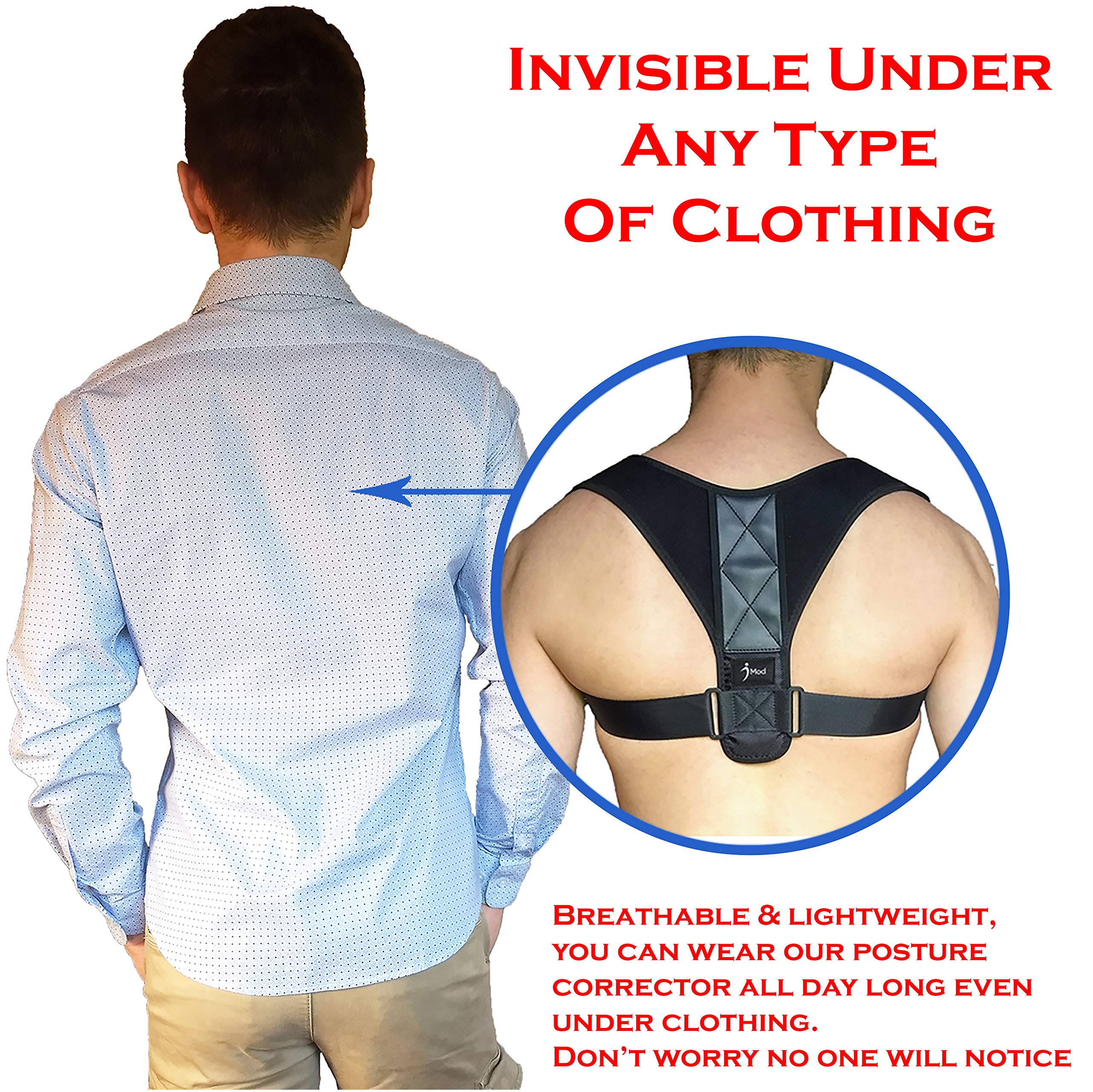 IMod Comfortable, Adjustable and Effective Posture Corrector with Upper Back Support for men, women, adults & kids alleviate all types of back pains and offer shoulder support and improves bad body posture.Aside from better posture, gets rid of back, neck, shoulder and upper back pain.Our posture corrector is lightweight with durable and high- quality neoprene.