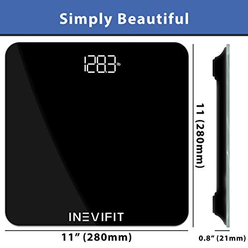 SIMPLE & CONVENIENT: The INEVIFIT Bathroom Scale is equipped with Auto-Calibrating sensors which will give you precise measurements for you and an unlimited collection of members of the family each time.